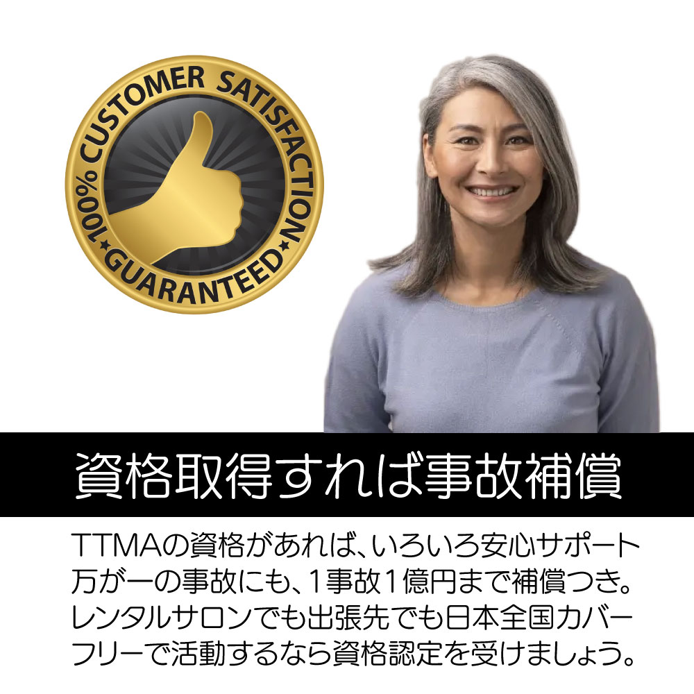 | セラピストの独立開業・フリーランスを応援するTTMA 安全安心のプロフェッショナルセラピスト資格認定制度 事故補償サポート・トラブル相談等のフリーランス支援 |