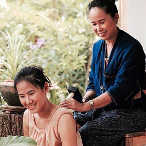 タイマッサージに代表されるタイ伝統医学ではありますが、サムンプライには、自然の薬草の有効成分や自然の波動を利用して、治療効果をより向上させる目的があります。実際に身体を温めることができたり、発汗を促したり、雷が落ちた木片でたたくトークセンでは、通常のマッサージで得られないようなすーっとした印象があります。 |