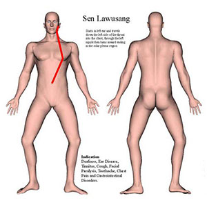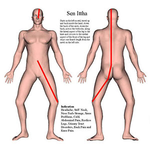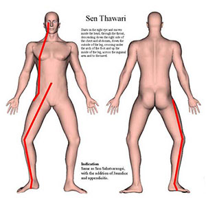 中医学においてもツボの通り道である経絡が存在しますが、「セン」と比較すると、エネルギーラインの通り道は約8割程度合致します。中医学では、各経絡ごとにどの臓器に対してアプローチするラインであるかが明確になっています。そこで、これらの比較を行うことで、エネルギーライン1本1本の意味が深く解明でき、具体的なアプローチに応用することができます。中医学における正経12経脈と奇経8脈の通り道と「セン」の通り道を比較分析することは、限りなく「東洋医学の医者」レベルを目指すことにつながり、この知識を持って臨床的な施術を行うことでさまざまな症例ごとの対処法がわかってくるものです。TTMAでは、タイ伝統医学を東洋医学として捉え、そのベースとなっている中医学を研究することで、より臨床において結果を導くための理論を実践しています。 |