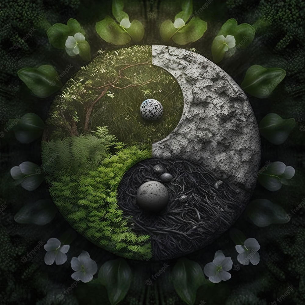 二元論(にげんろん、dualism)は、世界や物事を「精神と物質」「善と悪」など、相反する独立した2つの原理・要素から構成されていると考える哲学・思想的立場です。デカルトの心身二元論が有名で、一元論(全ては1つの原理)や多元論に対立し、物事を単純化して解釈する際に用いられます。これに対し、陰陽論は単なる白黒の二元論ではなく、対立しながらも依存・循環・融合する「一元的な調和」を示す概念です。陰の中に陽があり、陽の中に陰が存在し、互いが常に変化し合いながら太極(全体)を成すため、どちらか一方が正しい・優れているという分離思考をしない考え方です。現代は、複雑な事象を「善か悪」「敵か味方」といった2つの単純なカテゴリーに分類する善悪二元論や二項対立の風潮が強いのが特徴です。SNSやネット社会では特に、分かりやすい情報が好まれるため、思考停止して二元論的に物事を判断しがちです。対立を煽る言動が氾濫し、争いが常に生じています。勾玉(まがたま)のカタチは、相反する二つの要素が調和・統合し、新たな生命や循環を生み出すシンボルとして解釈されています。この世の万物は「陽」と「陰」の2つの相反する要素から成り立っている、という思想を具現化したものです。 二つの勾玉が一対になって回転することで世の中が出来上がっています。勾玉が頭(相手の尾)に接する形状は、二つの要素が独立しつつも円の中で融合し、循環している状態を表しています。陰陽太極図において、黒い勾玉の中には白い点、白い勾玉の中には黒い点があります。これは常に陰の中にも陽があり、陽の中にも陰があるという意味を持ちます。引用それぞれが相互に依存し、変化し続ける「陰陽のバランス」を示しています。このような対極の視点に立つことが、すなわち包括的な愛の精神であり、ヒーリングや施術を行う上で最も大切な心のあり方です。