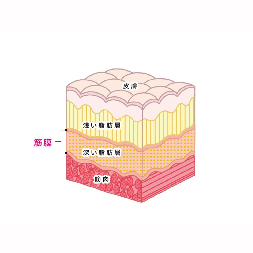 皮膚はサランラップのような膜だとしましょう。脂肪はこんにゃくぐらいの硬さです。筋肉は消しゴムぐらいです。骨はコンクリートくらいの硬さです。圧をかける際に読み取りを行っていれば、「今触れているのは筋肉なんだな。これは骨なんだな。」という具合にわかるはずです。目で見てもわかりません。手の感覚で理解することができるものです。圧の強さを調整する場合に、「この場所は皮膚表面から何センチくらい押し込む」という風に覚えようとする人がいますが、この捉え方はとても危険です。脂肪の厚みは場所によって違いますし、筋肉の大きさも部位によって全然違うものです。ですから、筋肉表面に指が到達したかどうかを感じ取るようにしたほうがいいと思います。筋肉表面に指が到達した深さは「弱」の圧です。そこからさらに3ミリ~5ミリ程度押し込んだ状態が「中」の圧です。7ミリ~10ミリくらい筋肉がひずむ圧は「強」といった感じで把握したほうがいいでしょう。もちろん、部位によって違いますので、〇ミリという数値は適切な表現ではありませんが、感覚として、筋肉に到達した場所からカウントするという理解であれば上達は早くなります。もっとも、もたれかかるように一定の体重をかけ続けて行うのであれば、いちいちカウントしなくても感覚でピタッとした圧のコントロールができるようになります。