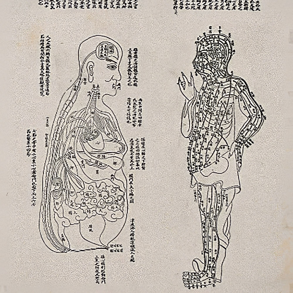 中国医学でも、人体の活動を担う本質は、臓器である五臓六腑ではなく、その中を流れるものにあると考えられています。臓器や消化器官、骨格は、入れ物に過ぎず、その中を流れる「気」と「血」が重要なのです。中国医学においても、「セン」と同じように全身を流れる「経路」があります。「経路」は、「気」と「血」が流れるルートで、十二経脈には手太陰肺経、足太陰脾経など、身体の役割と臓器にちなんだ名前が付いている。「気」は、気力の気、元気の気であり、身体を動かす目に見えないエネルギーをいいます。「血は」身体を養う栄養素であると同時に栄養素を運ぶ役割を担っています。西洋医学でいう血液よりもかなり広い意味をもっています。「水」は身体に潤いを与えるもので、「気血」は身体を温めますが、「水」は身体を冷やす役割をしています。経穴(ツボ)は、経路上にある点で、 経路を電車の路線に例えれば 、経穴は駅にあたります。1970年代の中国では、患者に鍼を刺した時の痛み響きの走る路と考えた医師もいましたが、はっきりとした結論は出ていません。