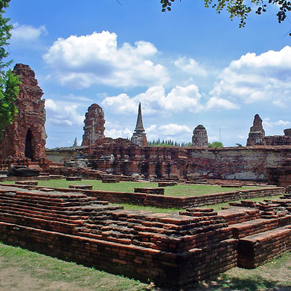 一方、西のビルマは地域の覇権を競い、16世紀ごろから執拗にアユタヤを攻撃を繰り返しており、アユタヤはこれに頭を悩まされることになります。ビルマのタウングー王朝 の君主、 バインナウンは 1569年にアユタヤ王、マヒントラーティラートを下していますが、ナレースワン によってアユタヤは再興されました。この後、ビルマが内乱に見舞われたことから一時ビルマの侵攻は収まったように思われましたが、コンバウン王朝が興ってから再びアユタヤはビルマの侵略に悩まされます。 1767年にはシンビューシンによって アユタヤ王朝 が滅亡します。このときアユタヤの町は徹底的に破壊されていたため、ビルマ軍が退却した後、新たに王となったタークシンはアユタヤ再興をあきらめ トンブリーへと遷都します。 |