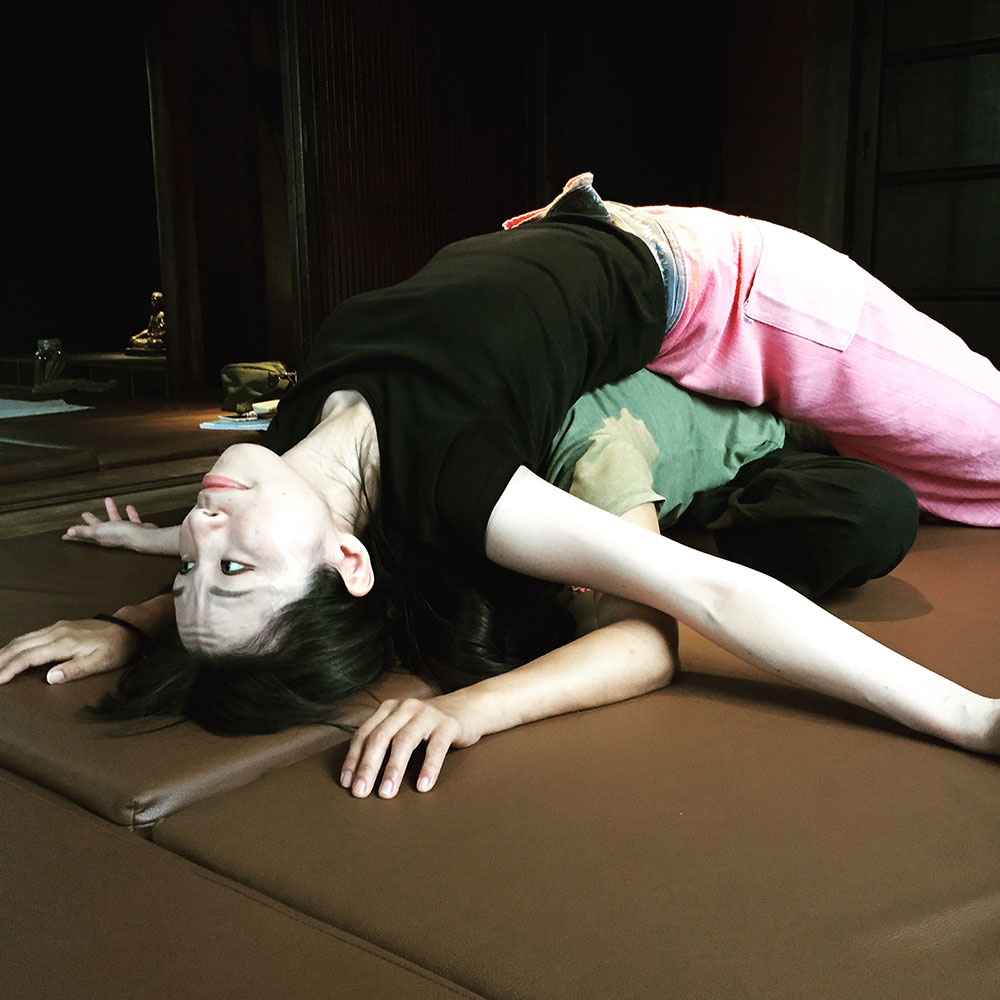 タイマッサージは、別名「二人で行なうヨーガ」 という異名を持ち、クライアントだけでなく、施術者本人の健康にも 効果があるのが特徴です。ひとつは、アクロバティックなストレッチに秘密があります。代替医療の中でも、多くの施術法では施術者の腰に負担がかかります。同じ姿勢で一定の方向性で圧を加えていくからです。クライアントが椅子に腰掛けていたり、ベッドに横たわっていたりする場合、どうしてもそうなってしまいます。ところが、マット一枚で行なうタイマッサージでは、施術者がいろいろな姿勢をとりながら施術を行なうことで施術者自身への負担が最小限に抑えられるわけです。また、施術中にも、施術者本人がストレッチをしながら行なったり、自分自身のツボの位置にクライアントの身体の部位を押し当てたりすることで、実は施術者本人の健康にも効果があるのです。もうひとつは、瞑想法を伴った呼吸法によります。圧迫では押す時にゆっくりと息を吐き、緩める時に息を吸います。深い呼吸で新しい酸素を取り入れながら、軽い運動をこなしているわけです。つまり、タイマッサージは、受ける側だけでなく、それを行なう側の健康にも良い素晴らしい施術法なのです。他の代替医療に従事していたプロの施術者がタイマッサージに転向してくるのは、こうした意味合いが大きいのかもしれません。